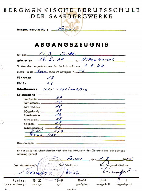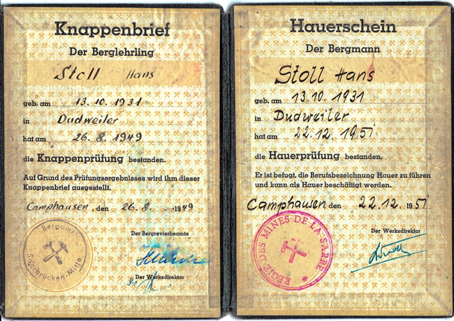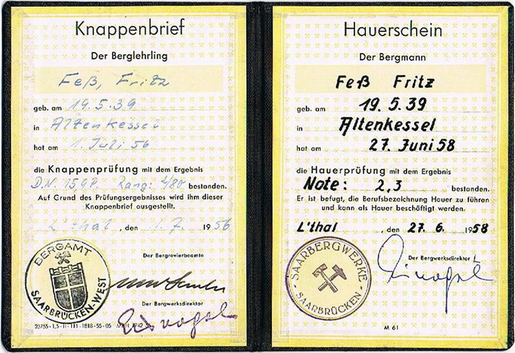 dem Jahr 1955. Er war damals auf der Grube Jägersfreude