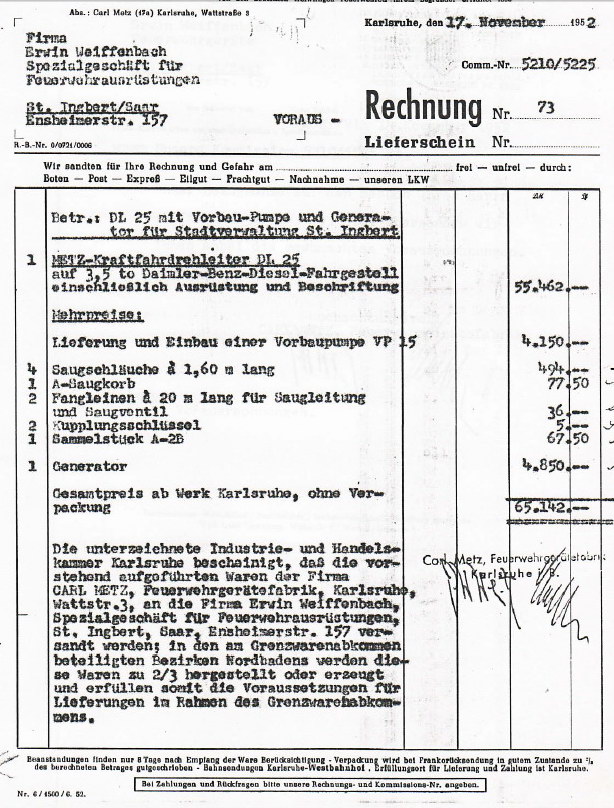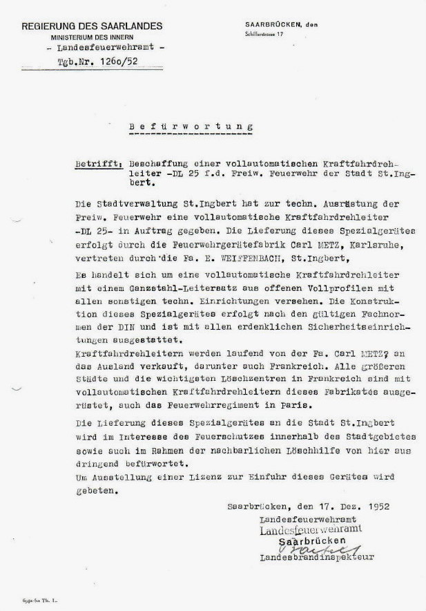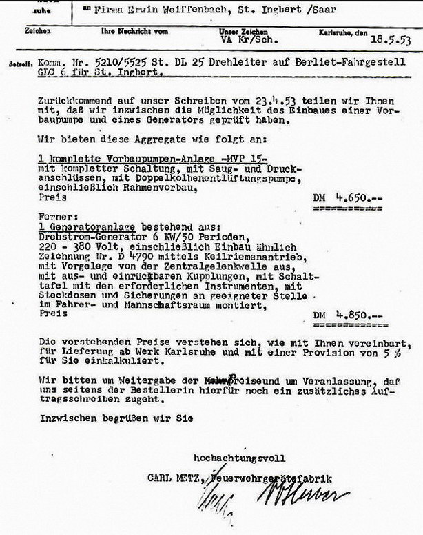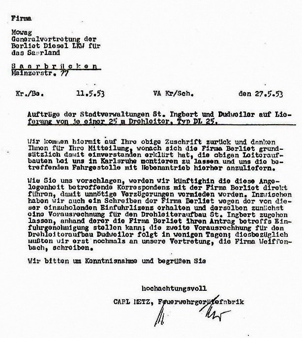 gleichzeitig eine fast identische Drehleiter. Die Firma Metz, Karlsruhe, sollte die Drehleitern ursprünglich