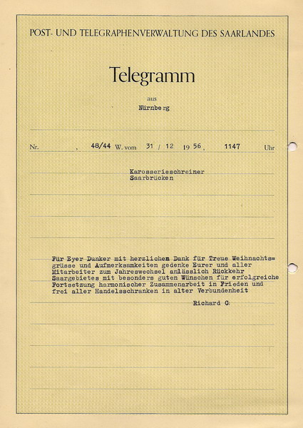 Saarlandes" zur Oberpostdirektion Saarbrücken