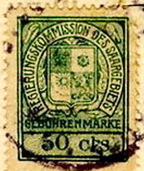 Das Bild zeigt eine Gebührenmarke zu 50 cts der Regierungskommission des Saargebiets. Foto: Ernst Becker