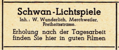 Wellesweiler Lichtspiele, Kirchenstraße (Inh.: Leopold Gill)