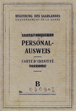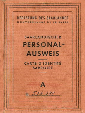 sarroise » fut créée. Elle fut reconnue en France et ses TOM, mais pas dans les autres pays. Seuls les citoyens qui accomplirent une des conditions du § 1 de la loi reçurent une carte d’identité rouge avec un A devant le numéro de la carte. Ceux-ci étaient les « vrais » Sarrois, on les nommait « Rotpässler »