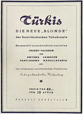 Die im autonomen Saarstaat ansässigen Tabak- und Zigarettenfabriken hatten damals Hochkonjunktur. Den meisten Rauchern waren deutsche Fabrikate zu teuer, denn für diese wurden hohe Importzölle erhoben und auf die Preise aufgeschlagen. Daher griffen die Saarländer in den 50ern gerne auf die preiswerteren Erzeugnisse ihrer eigenen Tabakwaren-Hersteller