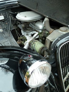 Wie dieses Foto einer 11B Familiale zeigt, hatten die Vierzylinder-Vorkriegsfahrzeuge mit 7 und 11 CV dagegen große Entlüftungsklappen seitlich an der Kühlerhaube. Erst nach dem Krieg bekamen auch alle Vierzylinder geschlitzte Seitenbleche.