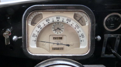 dagegen links oben: eine recht eigenwillige Anordnung. Auf dem Foto links sieht man das bis Mitte 1952 verwendete abgesetzte, nicht integrierte Jaeger-Instrument mit den filigranen Zeigern.